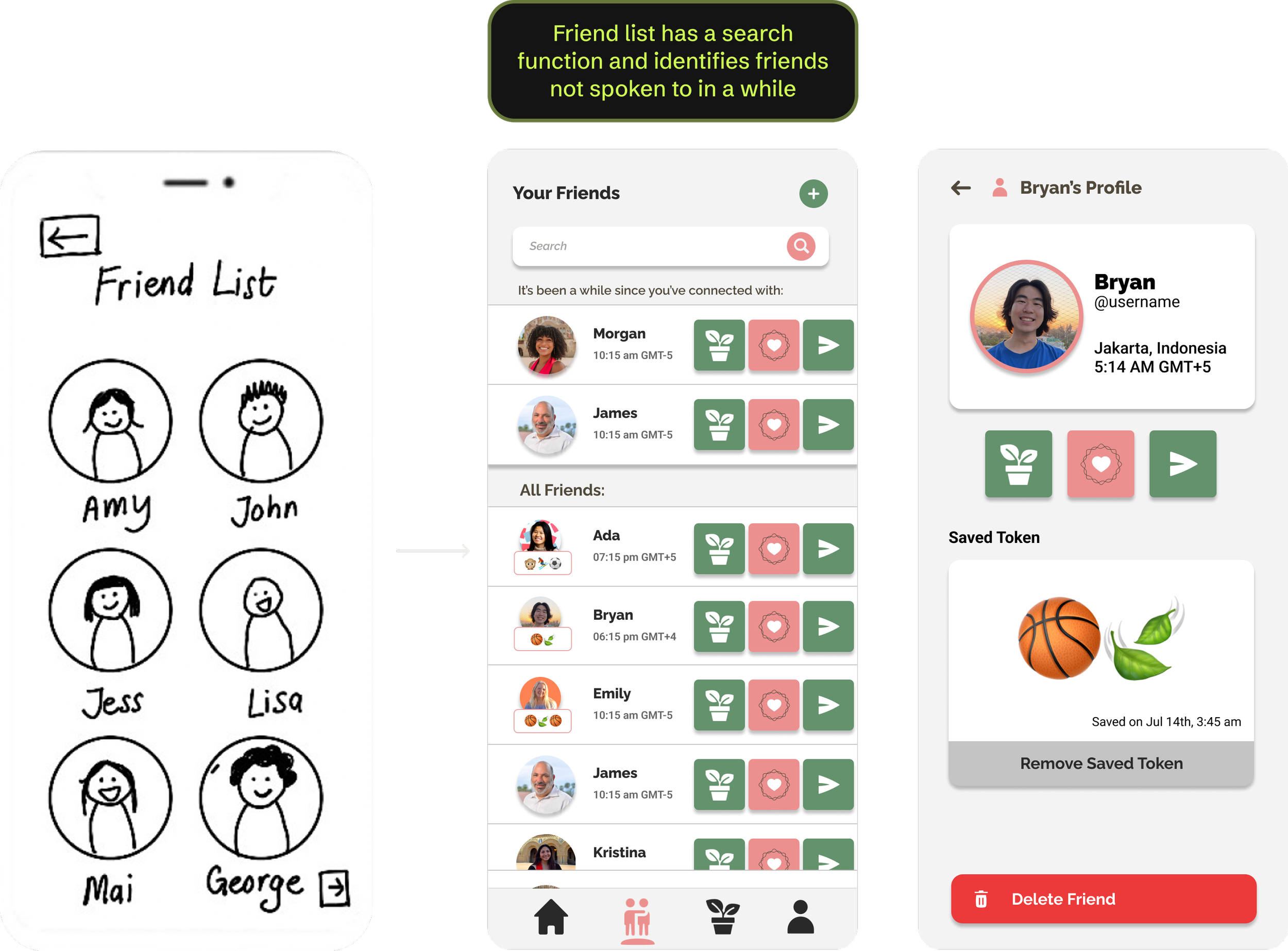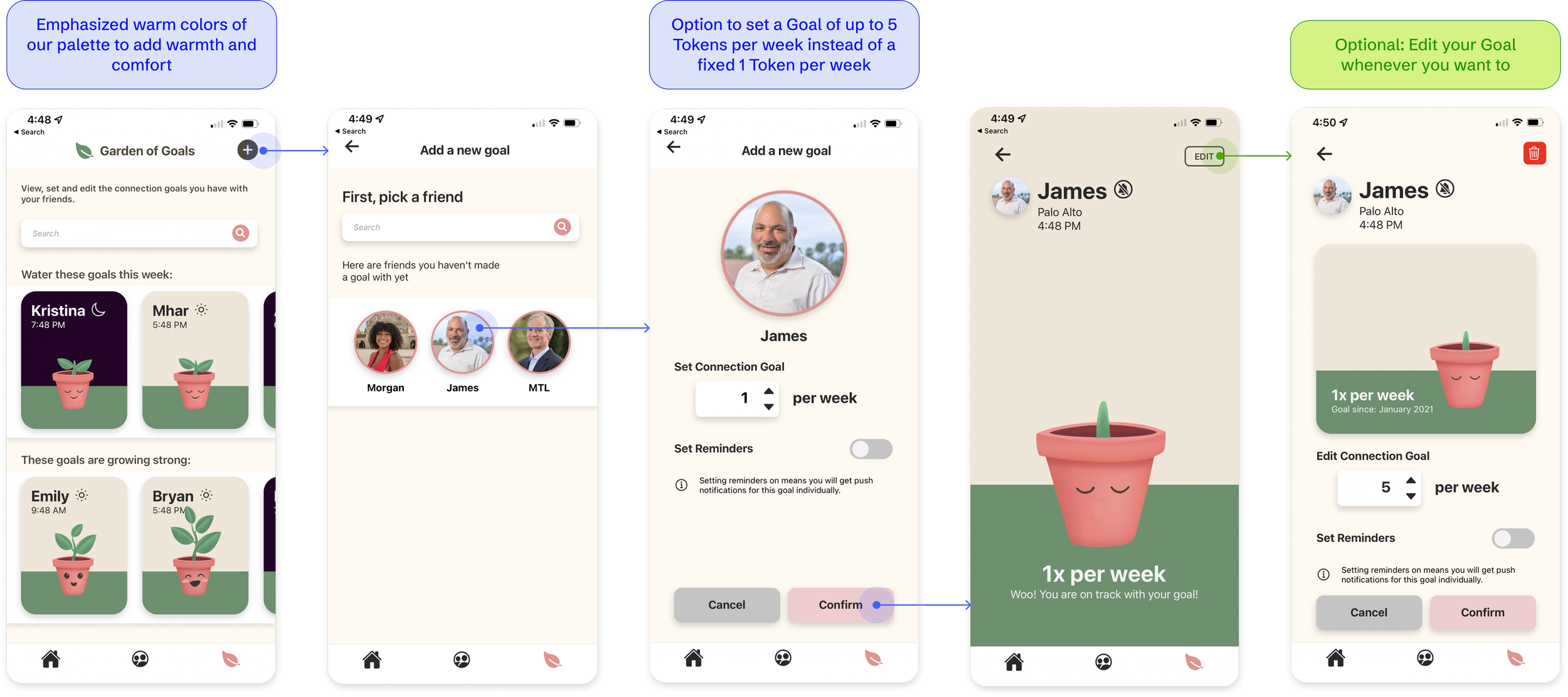 Set a Connection Goal with a friend: A plant whose growth symbolizes meeting a weekly goal to send tokens to a friend to motivate them in a visual and fun way.